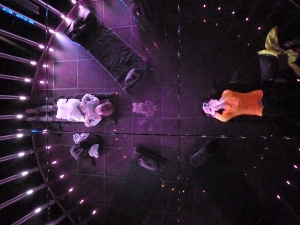 Lights of different colours come in all directions and in different forms around the cage. Close your eyes and feel it for 20 minutes. I’m not sure about its effect, but it’s fun to do so.