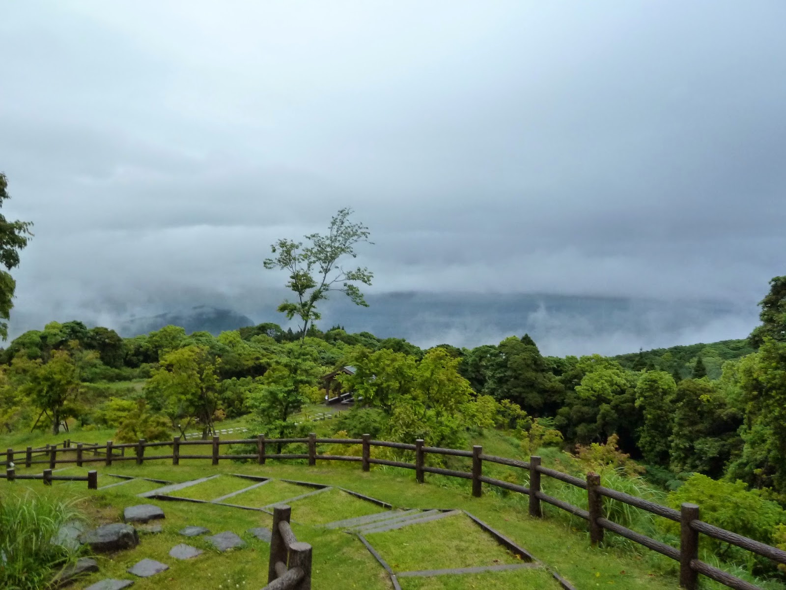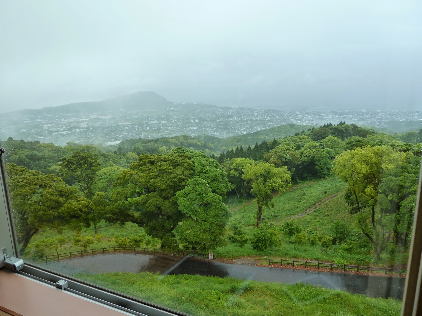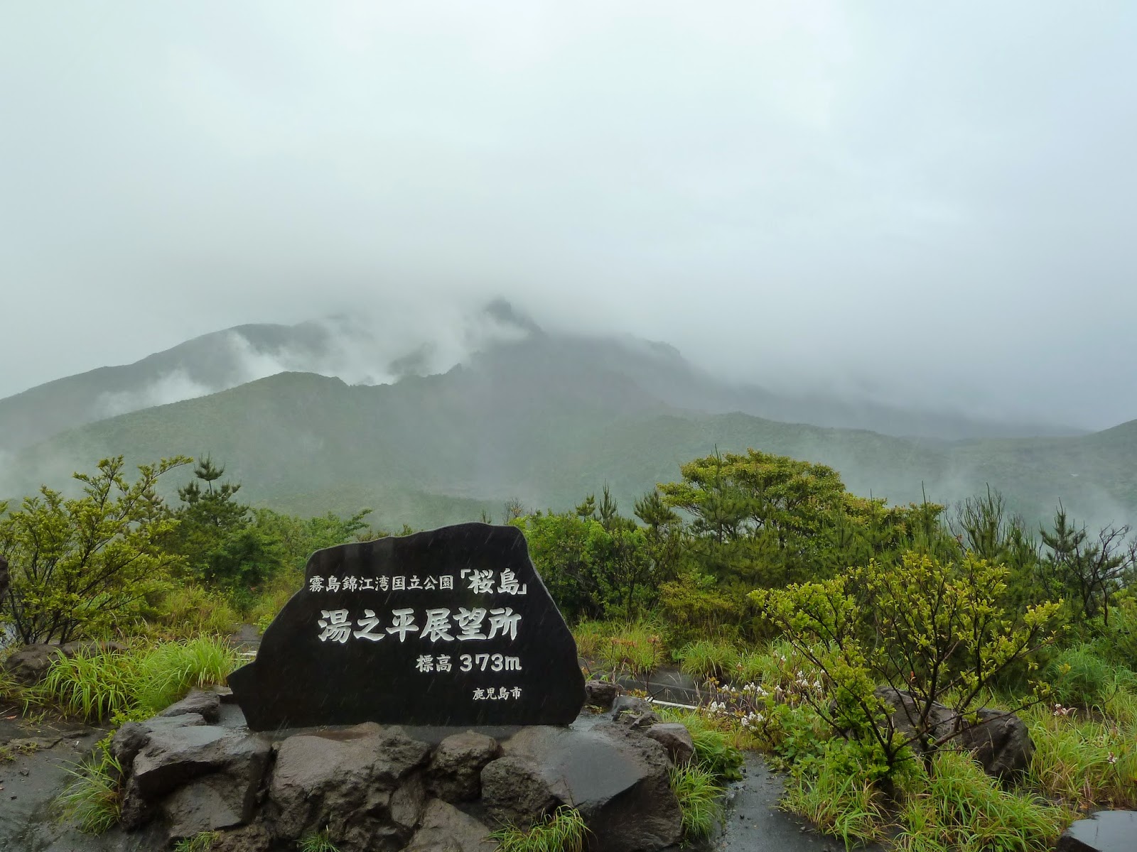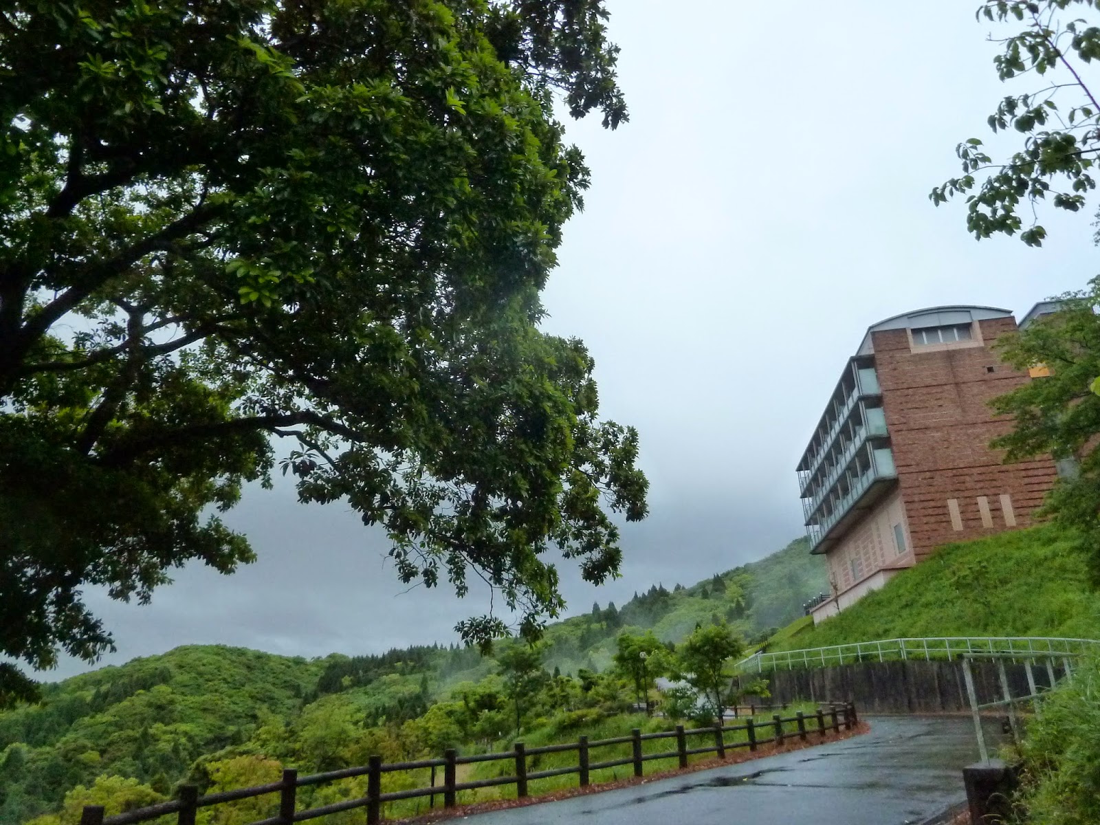 I have to mention that it is a lovely gesture that many hotels in Kagoshima Prefecture have spare umbrellas for guests’ use. Alright, the mountain was so foggy. We could hardly see the roads along the mountains.