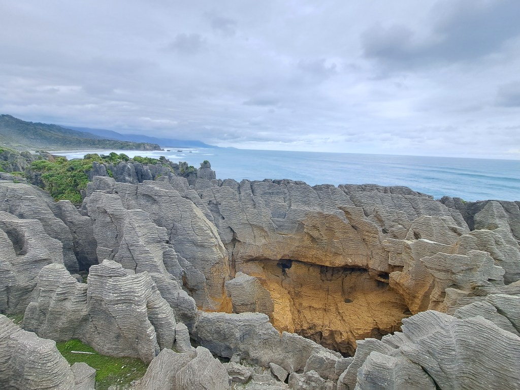 It was a cloudy day, but the rock formations looked fantastic, a lot better than Castle Hill. The bottom of some rocks was being eroded by constant splashes of seawater, making the rock formations even more spectacular. In 2020, I would have had the chance to see the Benagil Cave in southern Portugal. These pancake rocks are a gift from my trip, and I felt blessed to see them.