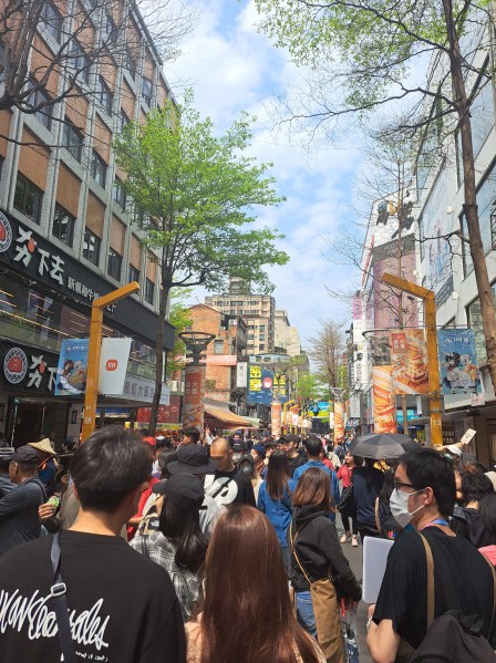台北市實在很大。我在西門町走了一回感覺十分迷惘。西門町就如香港的旺角一樣人山人海,對我來說,太多人了,但紅樓附近的酒吧街彩虹旗隨處可見,我感受到自由的氛圍。街頭娛樂不局限於唱歌,還有K-pop歌手、cosplay及吞火表演,早餐和中午要找座位不容易,咖啡室也滿座,唯有扮等巴士,座著喝咖啡。